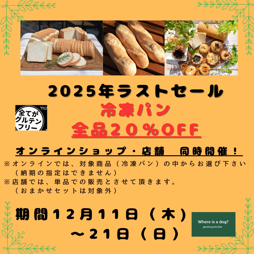 12月11日木曜日より、冷凍パンの2025年ラストセールを開催します。オンラインショップ・店舗同時開催です。お見逃しなく!